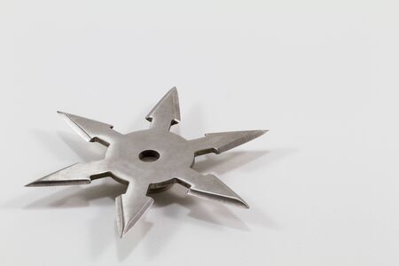 Silver shuriken with star shape isolated on white background.