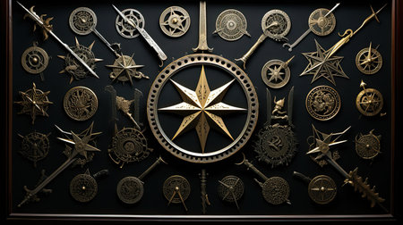 This close-up image showcases a meticulously crafted star-shaped emblem featuring a central gemstone, set against a dark textured surface, highlighting elegance and craftsmanship.
