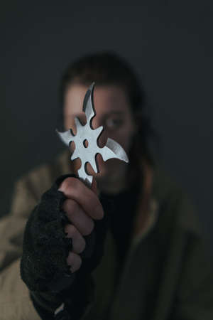 Hand holds shuriken. Shuriken ninja japanese weapon.