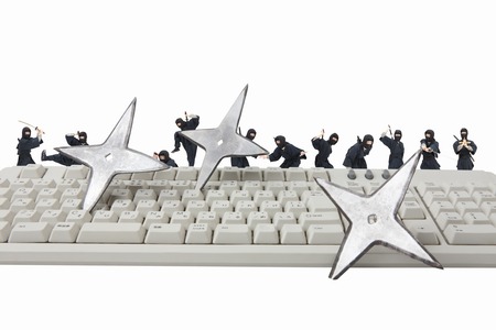 Closeup Ninja Star Shurikens on Black Background with Space for Text, Clipping Path
