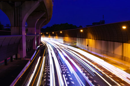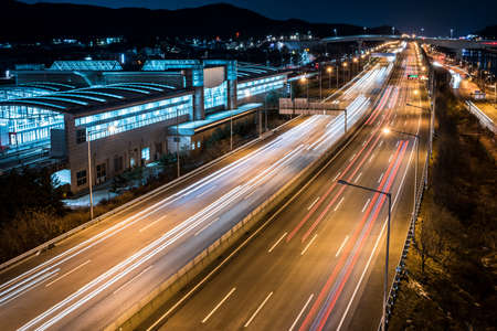 A Night View of Automobile Track from the Overpass