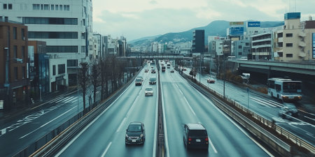 View of highway expressway with large number of cars moving rapidly AI Generative