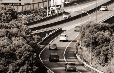 Cars on the highway go to office for work.