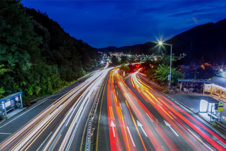 Kurosaki bypass at night The light trace of the light of the car