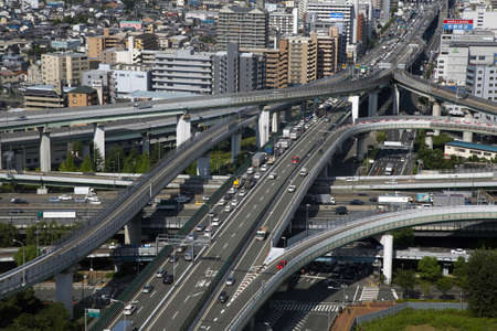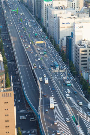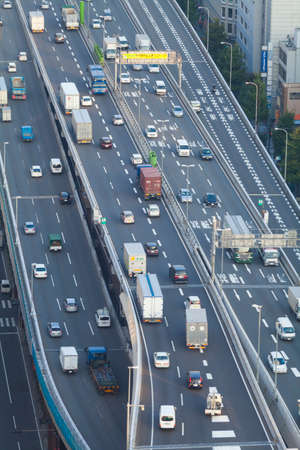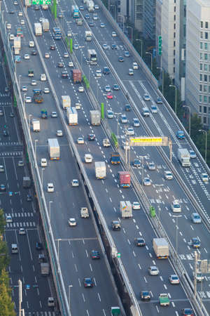 A traffic jam at the city highway in Tokyo