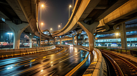 Immerse yourself in the pulsating energy of city life with this captivating timelapse of a bustling highway at night Witness the hypnotic dance of light trails as cars weave through the urban landscape, capturing the thrill and vibrancy of the city after dark AI Generative