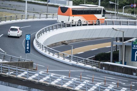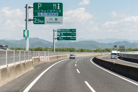 Japan - April 28, 2017. Vehicles run on mountain road at sunny day from Nagoya to shirakawa Japan. Japan is a popular destination for international tourists.
