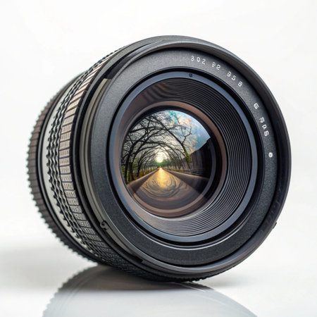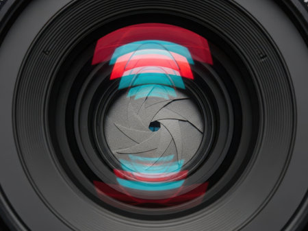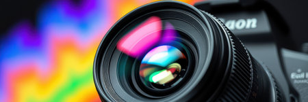 High-quality image showcasing the vibrant, reflective glass elements of a camera lens