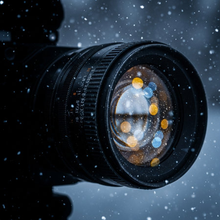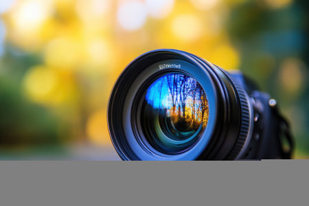 Captivating lens of a camera with vibrant bokeh effects in the background