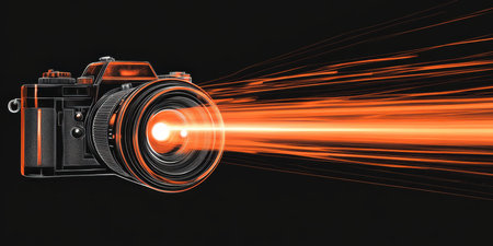 A striking visual display of a camera emitting vibrant light rays, highlighting the fusion of technology and creativity in photography.