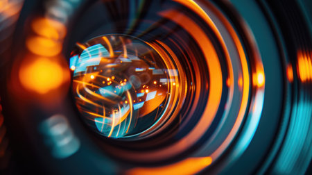 Artistic abstract close-up of camera lens spiral shape creative photography equipment detailed macro shot modern technology optical glass perfect for design background