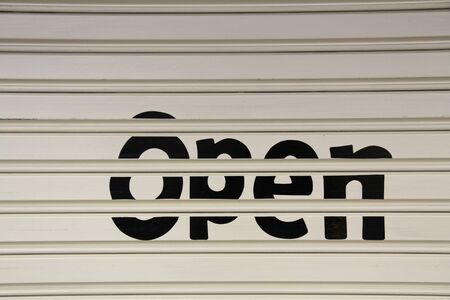 inscription We are still open on the street of Madrid, Spain 2018-08-05