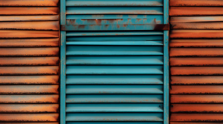 A pair of weathered blue shutters adorns a rustic wall, offering a glimpse into the charm of traditional architecture and the beauty of aged materials.