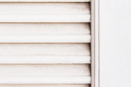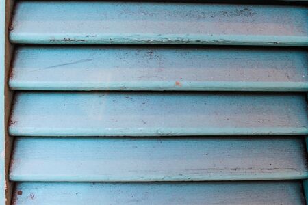 Selective blur on closed wooden blinds and blinders on windows on the ground floor of a house, a residential building, in the city center of Belgrade, the capital city of Serbia, during a sunny afternoon.