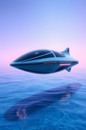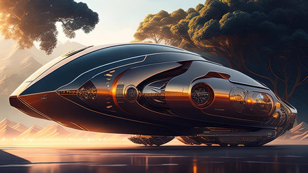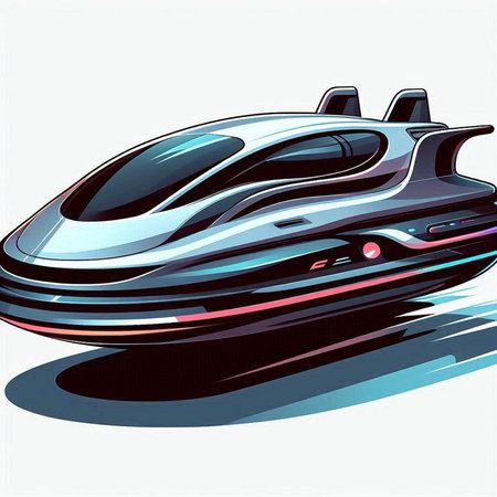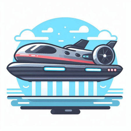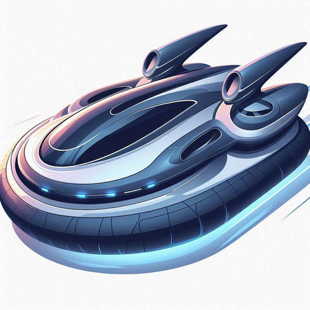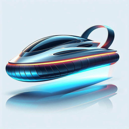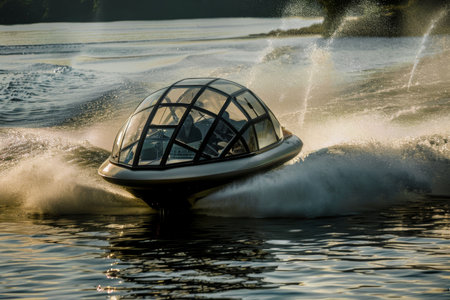 A hovercraft maneuvering effortlessly over water and land. AI generated