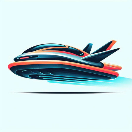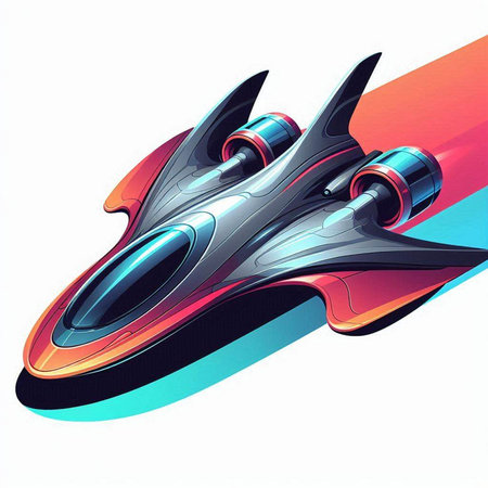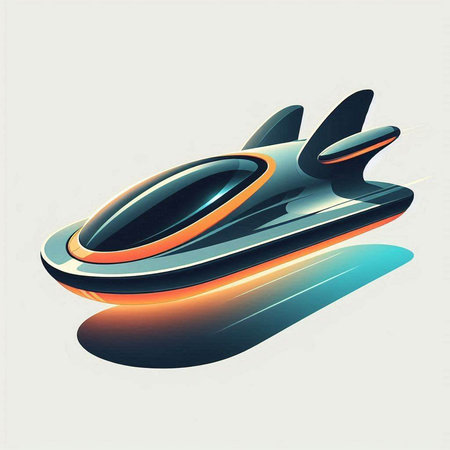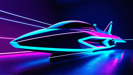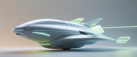 AI Generated. Futuristic spacecraft design featuring sleek lines and glowing accents on a neutral background