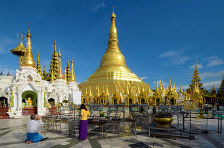 Myanmar Buddhists make worship to The Shwedagon Pagoda the Great Dagon Pagoda and the Golden Pagoda.