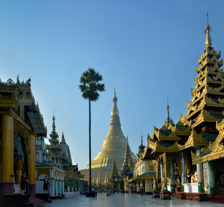 Beautiful view of Golden Shwedagon Pagoda complex in the early morning.Yangon, Myanmar.