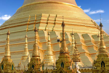 detail view to a group of golden stupas at the Shwedagon Pagoda in Yangoon, Myanmar (Burma)