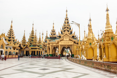 Shwedagon Paya pagoda Myanmer famous sacred place and tourist attraction landmark.Yangon, Myanmar