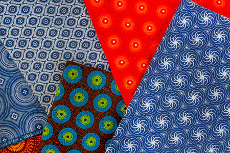 Close-up of colorful African textiles, emphasizing their unique and beautiful patterns.