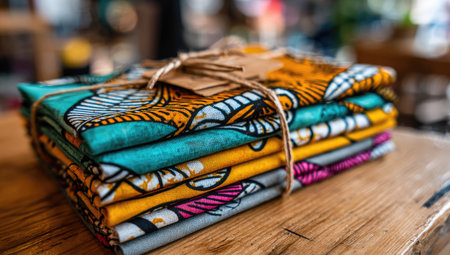 Stacked vibrant traditional African textiles