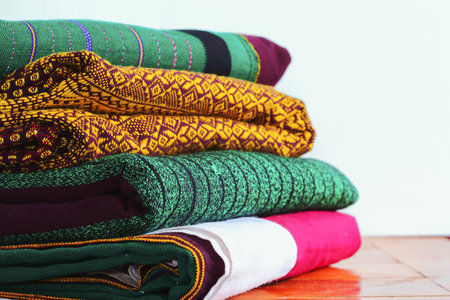 Craftsmanship Textiles silk, folk art in Thai pattern on table