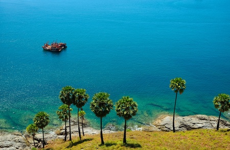 sugar palm a row by the sea.