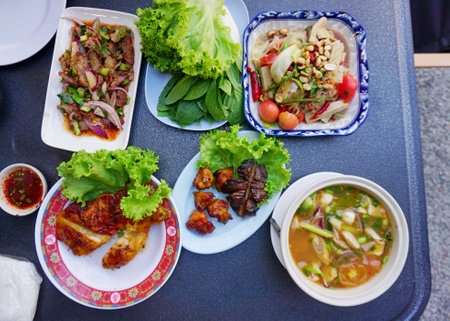 Thai north eastern food, Spicy food set on table
