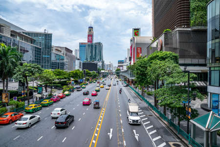 Bangkok, Thailand - 26 Aug 2021, Ratchaprasong Road, a highlight along Bangkok's shopping area with environment in afternoon Thursday. Bangkok, Thailand.