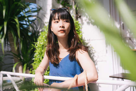 Cute young asian woman portrait outdoor scene.