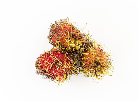 isoltated tropical Rambutan fruit peel is red.