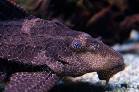 Close up of a catfish in the aquarium.