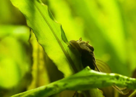 fish in aquarium. fish swim in water. Animal is at home. fish eat greens.