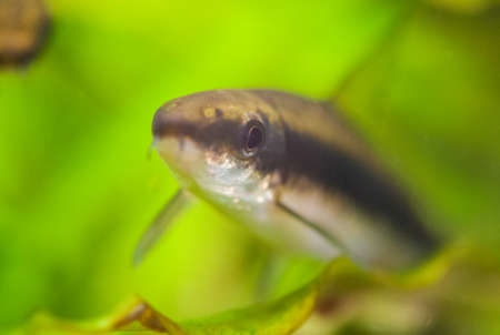 A macro shot of an otocinclus catfish.