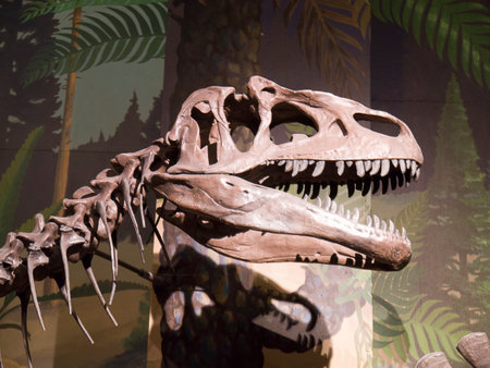 Tyrannosaurus Rex skeleton in museum, closeup of photo
