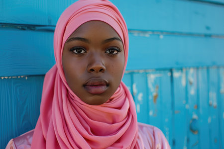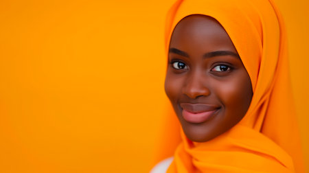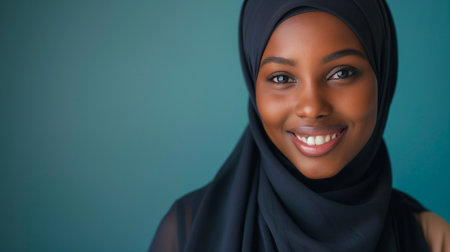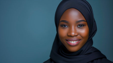 Portrait of a beautiful young african woman with hijab smiling at camera