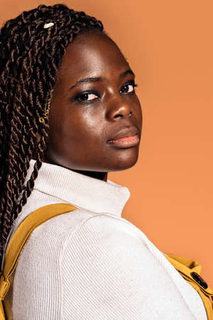 Beautiful african american woman with dreadlocks hairstyle posing in studio
