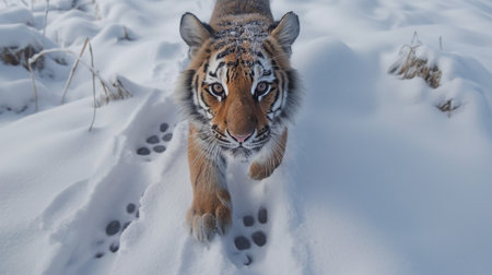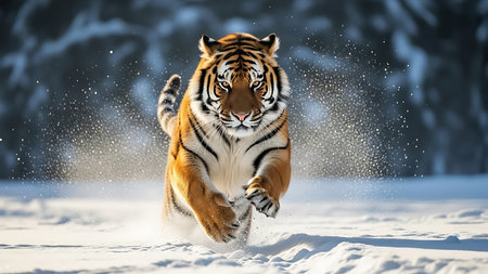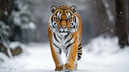 Siberian Tiger in Snowfall Amur Tiger Running Winter Wilderness Action