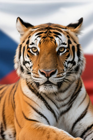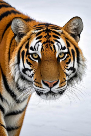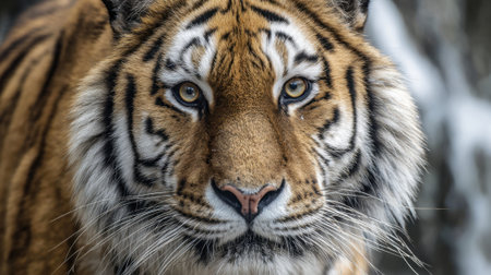 Close-up portrait of a magnificent tiger, its intense gaze captivating. A stunning wildlife photograph.
