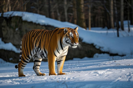 Siberian tiger in a snow covered area