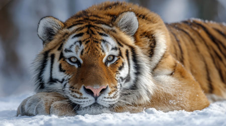 Beautiful wild siberian tiger on snow