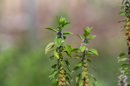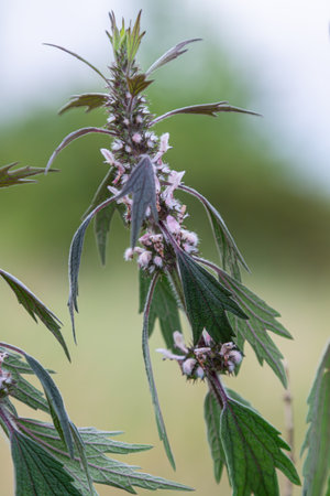 Leonurus cardiaca, motherwort, throw-wort, lion's ear, lion's tail medicinal plant with opposite leaves serrated margins Blooming in summer