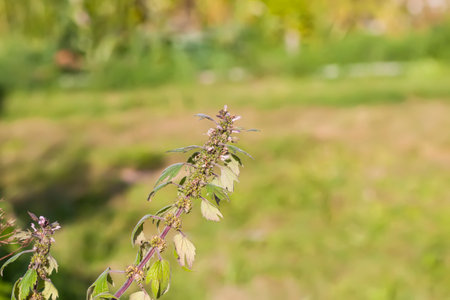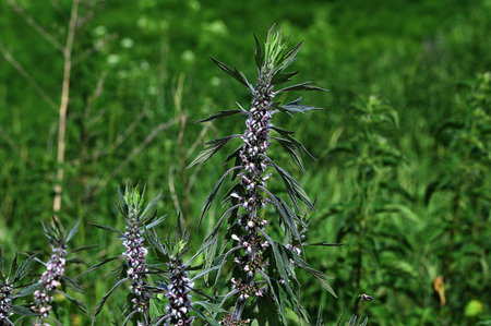 Wild plant motherwort Leonurus quinquelobatus growing in the field