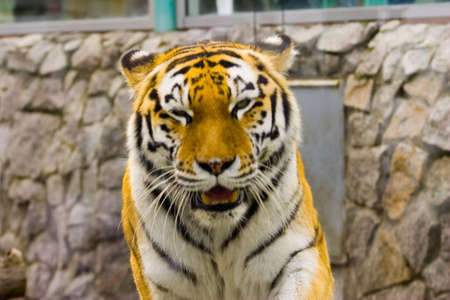 Close up of a tiger in the zoo. (Panthera tigris altaica)
