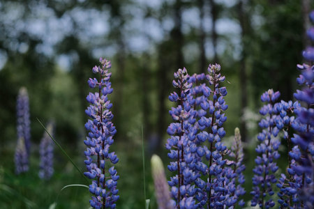 Stunning Blue Lupine Flowers in Beautiful and Colorful Bloom, Showcasing Natures Splendor