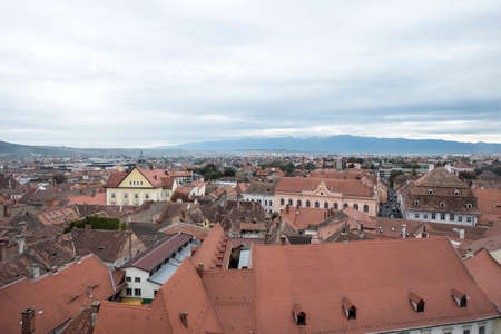 Sibiu, Transylvania region. Architecture of an old european city. Center of Sibiu. Top view