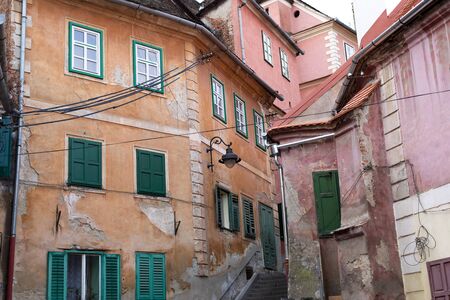 Sibiu, Romania, May 15, 2019 Cityscape with old house of historical center