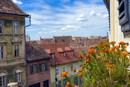 Sibiu - Romania, July 18, 2017: View to the roofs of the houses in the center of Sibiu, Romania