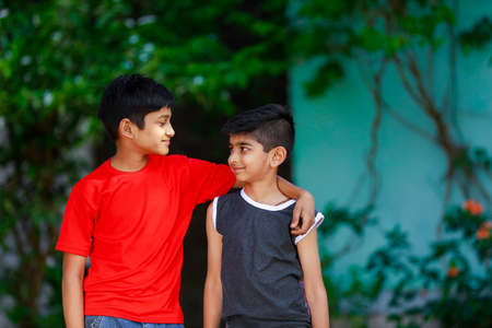 Indian little child walking together and showing expression